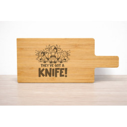 Laserkaiverrettu leikkuulauta, kestävää luonnonmateriaalia.